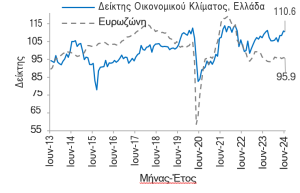Δείκτης Οικονομικού Κλίματος: 110,6 ΜΔ τον Ιουν-24, -0,4 ΜΔ ΜοΜ και +1,4 ΜΔ YoY τον Ιουν-24 από +2,5 ΜΔ ΜοΜ και +3,7 ΜΔ YoY τον Μαϊ-24.